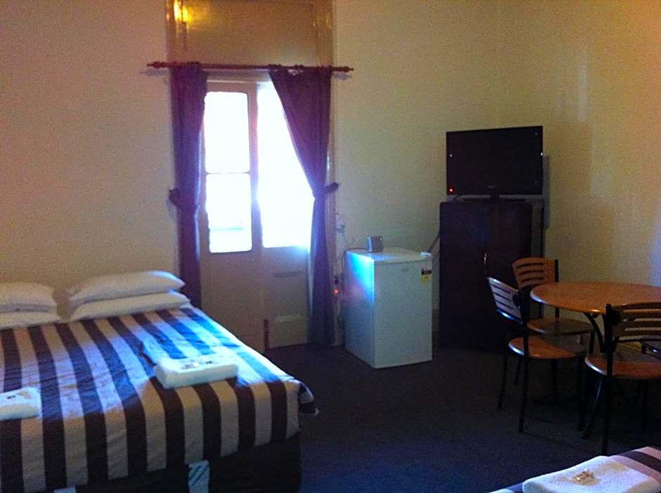 This spacious room features a flat-screen TV, a refrigerator, fan and access to both shared bathroom facilities and a shared balcony.